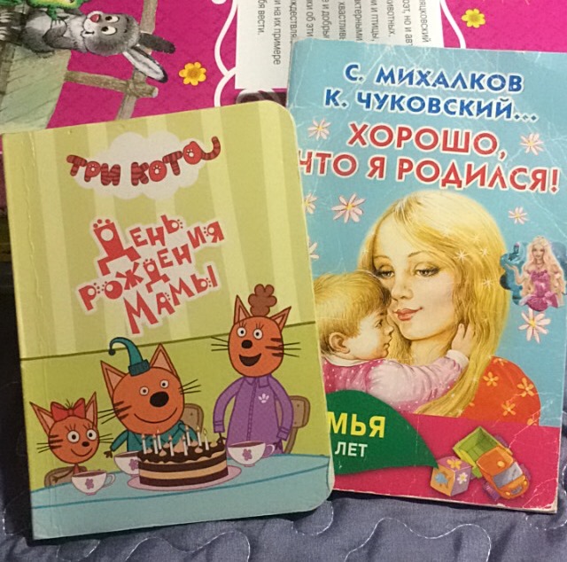 Вот эти две еще любит очень. Одно время любимым мультиком был "Три кота")) , а вторая книжечка просто до слез....некоторые стихотворения. Потрясающая!!!