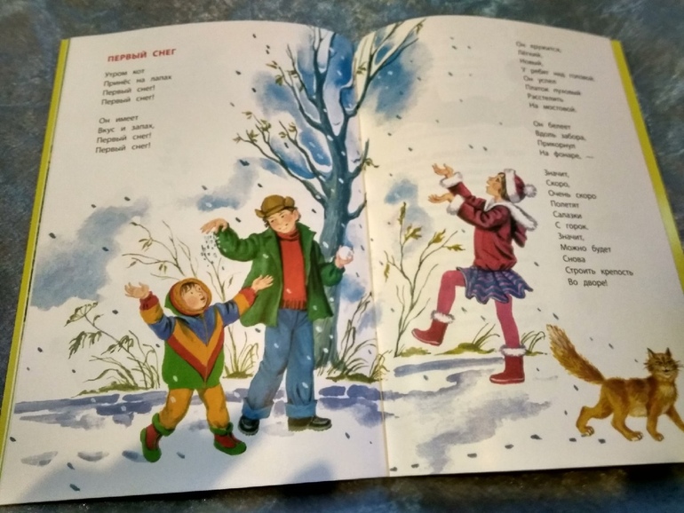 Вот знакомый с детсадовской поры "Первый снег" Якова Акима в тонкой такой приятной книжице Весело мне