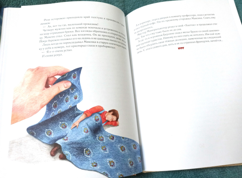 Мне книга очень понравилась тем, что в ней есть приключения. Книга длинная и в ней интересно везде. Так и хочется читать ещё 1000 страниц, но она не такая толстая. В ней много картинок, как показалось мне, и шрифт крупный. Книга хоть и кажется толстой, но прочитать можно за 1-3 дня, если читать каждый день главы по три.