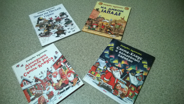 Маури Куннас. Книг у нас немного, но все нравятся. Когда фотографировала, Юрик неожиданно сказал, что любимая - про Песью горку. Там никаких приключений, просто быт. Мне казалось, что Волшебный барабан сына увлек куда больше... Что радует, дети узнают рисунки, только достали новогодние истории, сразу попросили перечитать и другие.