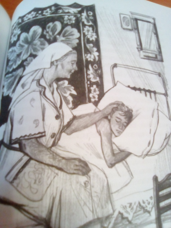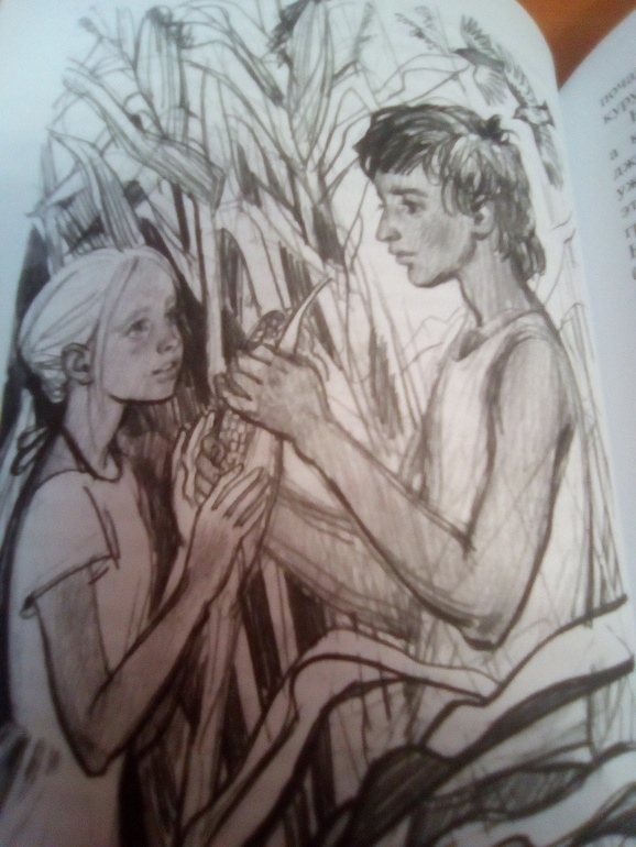 К сожалению, прочитав книгу, Давид сказал, что книга "не его". Я когда начала читать, то сначала тоже чтение шло как-то вяло, но потом стало интереснее, и в целом книга оставила неплохое впечатление. Но можно было и пропустить. Немного раздражало то, что автор несколько раз употреблял просторечный предлог "по-над". Ну, один раз, для колорита, вполне приемлемо, но этот предлог попадался там не раз, мне не очень было с ним комфортно)) Карандашные иллюстрации Н. Курбановой мне понравились, очень приятные: