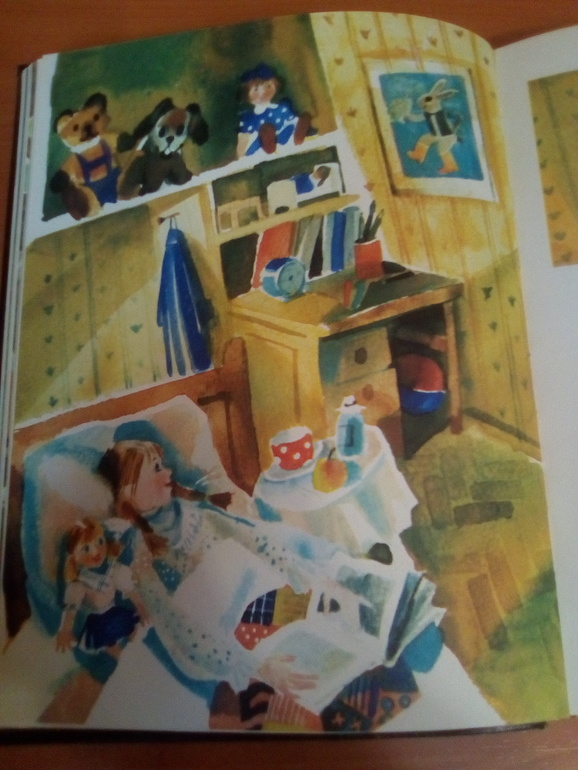 Но меня эти совсем не смущают, а даже нравится такой подход художника: дети, читающие книгу, тоже разные, есть и толстушки, есть и не очень симпатичные, и пускай они тоже видят, что героиня книги может быть самой обычной, не писаной красавицей. Кстати, если посмотреть на папу Фелиции, то вполне понятно, что такие черты внешности видимо просто наследственные (тут он катится с горки):