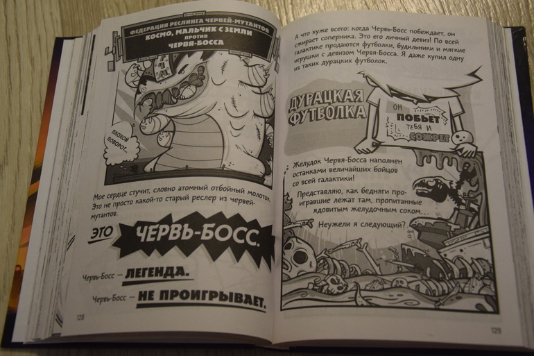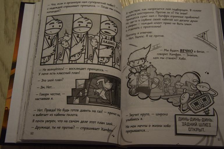 Разные книги мы читаем, бывает и не особо умные и высокохудожественные, но эта книга, вообще атас. Надо такое фантазировать для детей. Дима сказал, что ещё две части есть. Это была вторая,и он бы прочитал еще другие две части. "Прикольная" книжка сказал, но мама не хочет их покупать (пока что). Книга в стиле «полукомикс» что ли. Может для нечитаек и не плохо.