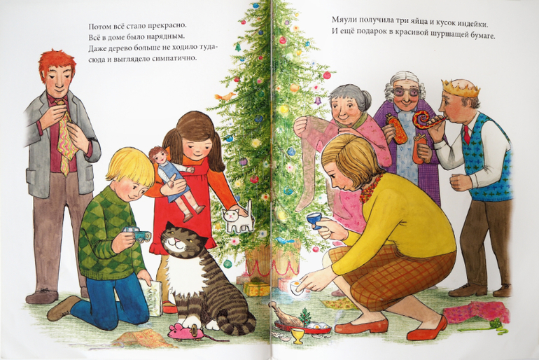 "". Даже не знаю что такого в этих книгах - вроде и текст и истории незамысловаты, однако что-то уютное в них есть. Кстати, если кто-то вдруг не знал - на ютюбе есть небольшой ролик, как раз про рождественские проказы Мог (так зовут Мяули в оригинале). Дочка моя отказывается смотреть - очень переживает за кошку)) А мне очень нравится эта смешная усатая непоседа.