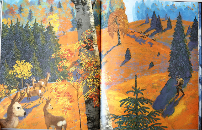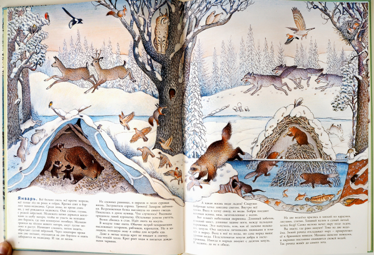 "В лесу" эту книгу мы очень любим, достаём довольно часто порассматривать. Читали, конечно, тоже, но как-то урывками, не всё. А тут дочка наконец доросла и до текста - раньше ей видимо было не очень интересно, сейчас же слушала внимательно.