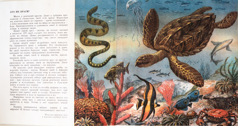 "Рептилии" - неоднозначное впечатление. Я люблю творчество Сладкова, но всё же требования к подобного рода книгам возросли, по сравнению с тем временем, когда они выпускались. Да - интересно, много фактов, познавательно. Но всё как-то урывками, очень скупо и неподробно. Иллюстрации прекрасны, но совершенно не содержательны - приходилось постоянно лезть в интернет для большей наглядности. Дочке слушать было интересно, но даже она недоумевала от недостатка подробностей и от нехватки иллюстраций, соответствующих тексту.