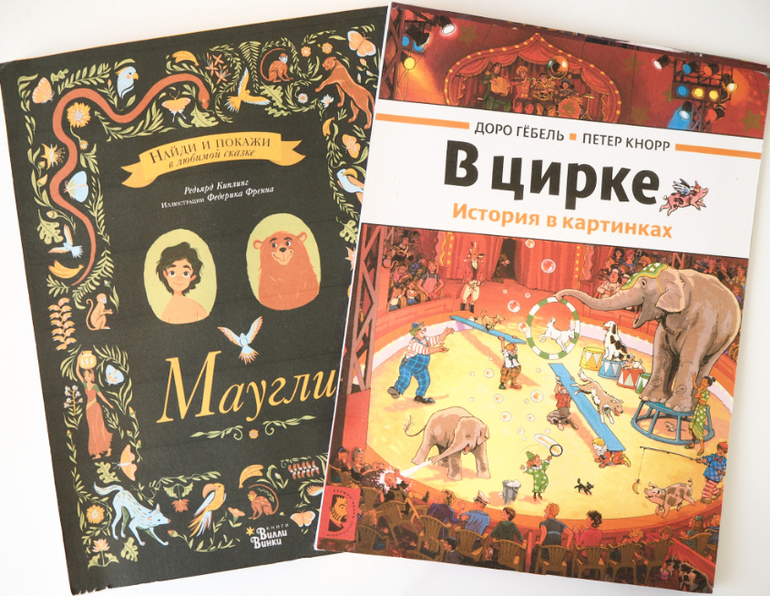 Две книжки-гляделки. Обе самиздат. Насколько мне не нравится "", настолько она нравится дочке. Подумываю прикупить что-то из этой серии всё же.