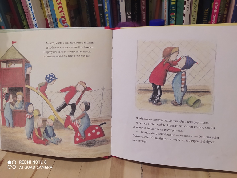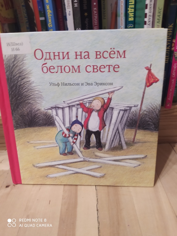 " Одни на всем белом свете". Очень понравилась книга. Мальчик плохо умел определять время, и подумал, что уже поздний вечер и за ним не пришли родители, наверное, их задавил грузовик. Он пошел в садик за братиком, они пришли домой и стали сами устраиваться, как умели. Построили себе шалаш, приготовили еду. Потом пришли родители и все объяснилось.