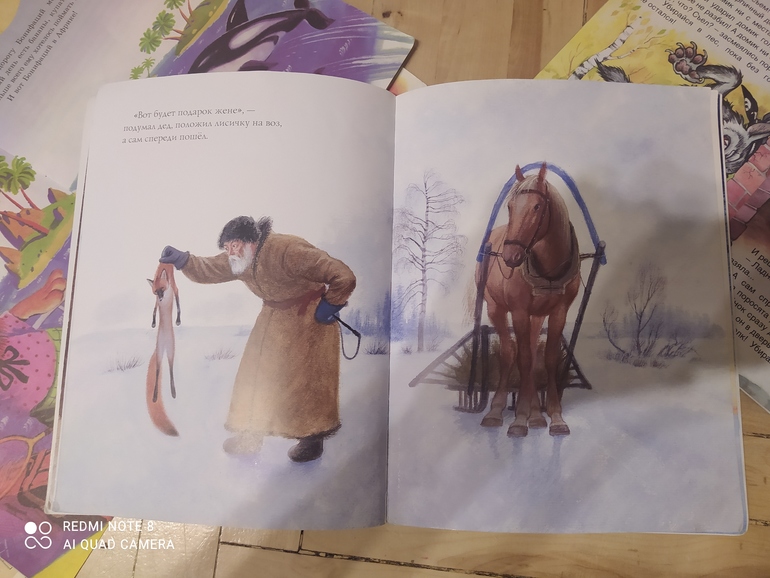 Сказки. Варя сама выбрала их в библиотеке. Какая красивая сказка " Лиса и волк". От Мелик Пашаева очень хорошая серия эти тоненькие книги.