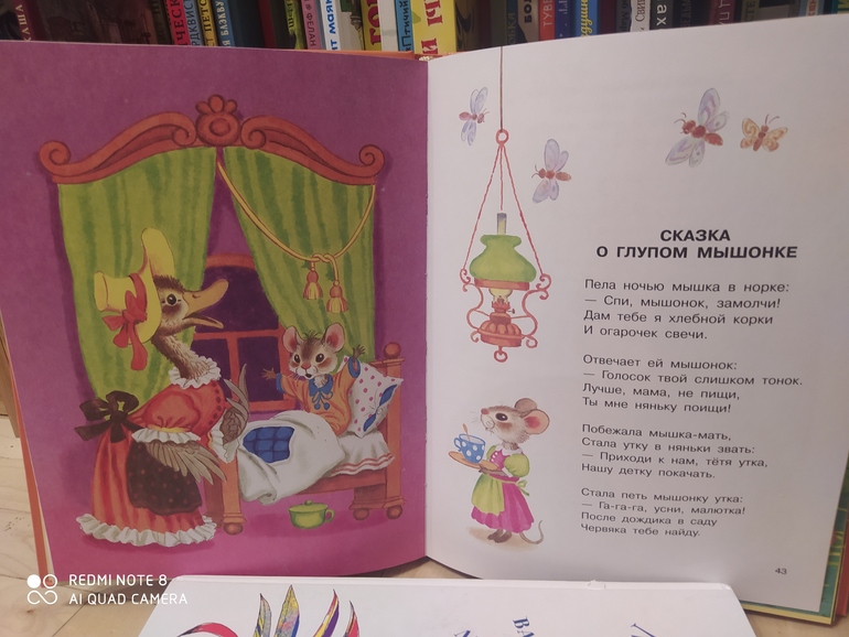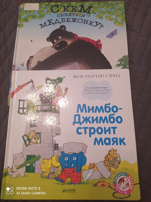 В сотый раз читает книги про Мимбо. Тоже читала Арине. Они обе до сих пор обожают этого любопытного Слоника.