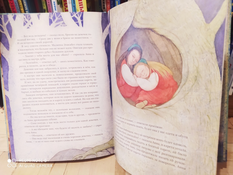 Вторая сказка немного жестокая. Два брата остались одни дома, и старший брат выгнал младшего на улицу, чтобы тот не мешал ему. Младший потерялся. Родители приехали и отправили старшего на поиски младшего в лес. Все закончилось хорошо, но родители, мне кажется, поступили необдуманно и жестоко, отправив одного старшего сына в холодный лес. Девочкам сказки понравились.