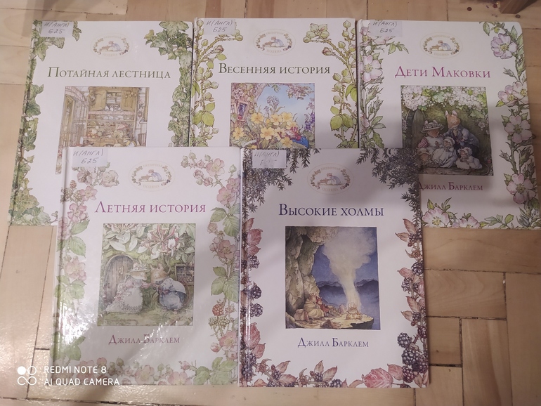 Прочитали оставшиеся в библиотеке книги про мышек, живущих на Ежевичной поляне. Арина в восторге.