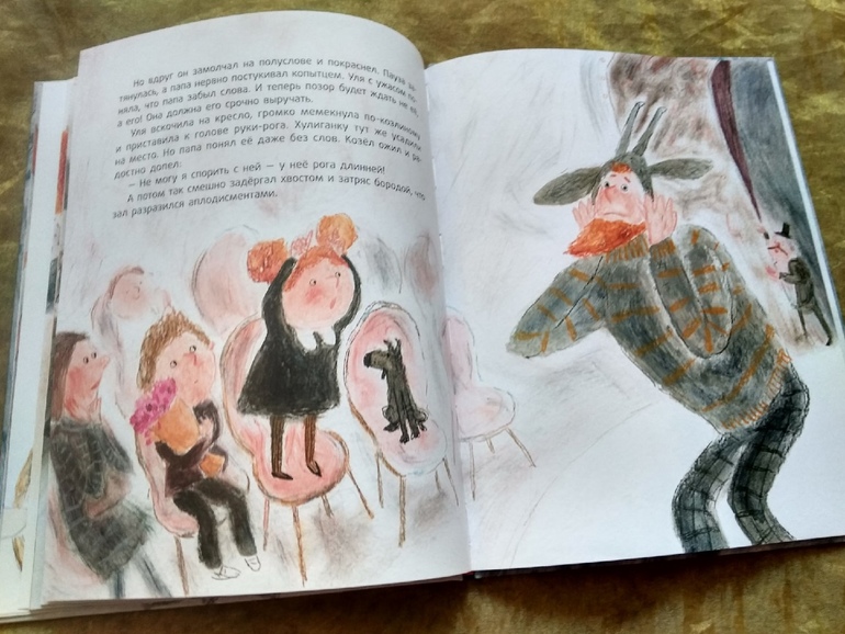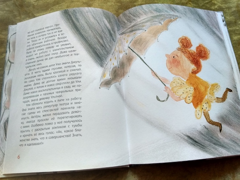 Как же я ей рада!Эта книга большого формата в твердом переплете словно написана автором в ответ на все мои претензии к современной детской литературе. Это книга о детях, современная книга о современных детях. Это не сказка, а описание обыкновенных будней - книга о школьниках, о первоклассниках. Вы загибаете пальцы, считая плюсы? Один из главных героев книги - папа Джульетты. Причем, не стандартный для современных книг папа, как член семьи, обеспечивающий отцовское отношение к ребенку, дополняющий безусловную мамину любовь с обнимашками отцовскими играми и разговорами, а работающий папа, папа-профессионал. А сколько мы страдали в нашей ленте по исчезновению из детских художественных книг родителей-профессионалов и профессий вообще вы, наверное, помните. Практически во всех книгах - просто мама, просто папа и семья изнутри без внешнего мира. А здесь - жизнь маленькой девочки с походами к папе на работу, с первой любовью к соседу по парте, с желанием похвастаться любимым папой, с жутким страхом того, что папу, который работает в театре, но не актером, а рабочим сцены, не оценят.