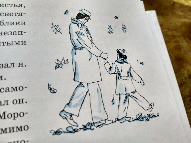Рисунков с папой там великое множество - папа во всех ипостасях, даже с крокодилом и в кабине звездолета, но я выбрала "на злобу дня", причем, сильно на злобу...