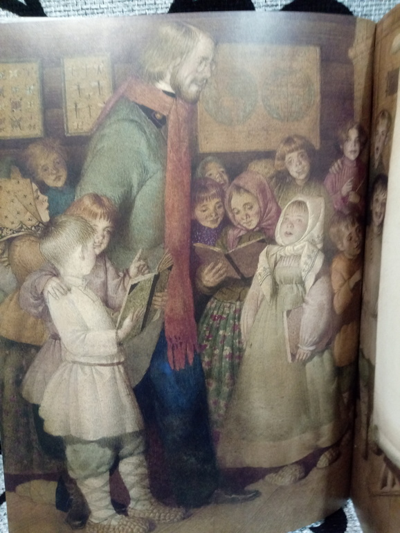 С рассказом Илья был уже знаком. Распечатывала рассказ крупным шрифтом, давала читать прошедшим летом. Но как-то не зацепило его. Хотя я помню, что сама в детстве была тронута до слез. Когда в библиотеке попалась эта книга, решила попробовать ещё раз, может с иллюстрациями будет лучше восприниматься. Хотя прямо скажем иллюстрации здесь весьма специфические. Не в моем вкусе. И шрифт хоть и крупный, но тоже весьма далек от идеала. Илья прочитать прочитал. Даже вспомнил, что уже читал такой рассказ летом. Но опять книга осталась проходной.