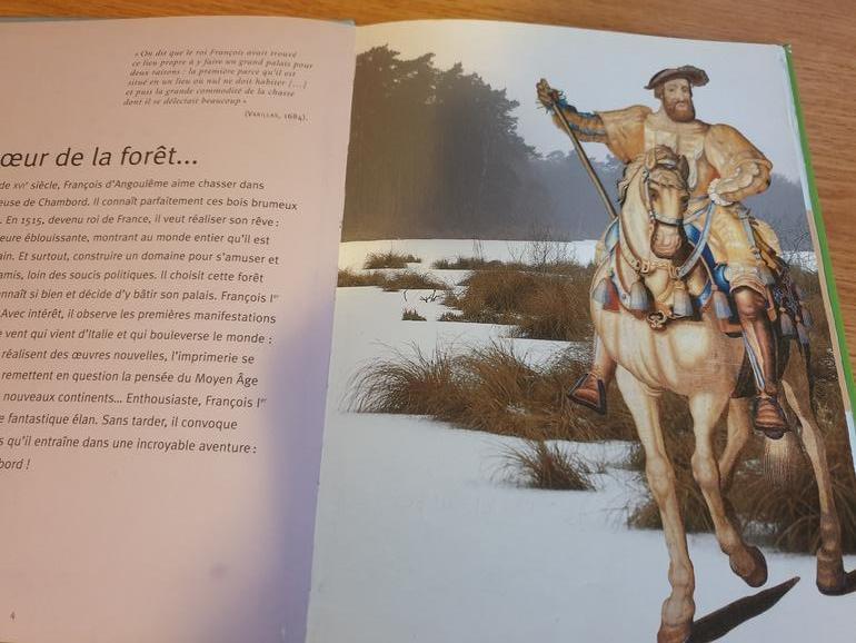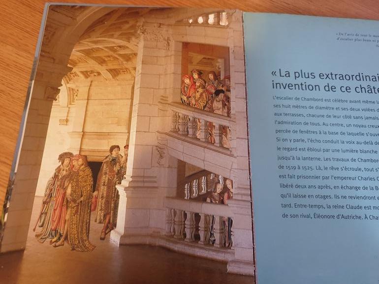 Это книга об одном из роскошных замков на Луаре, построенных в Ренессанс. Здесь мне понравилась идея на современных фотографиях сделать коллаж со старинными гобеленами, полотнами и пр.