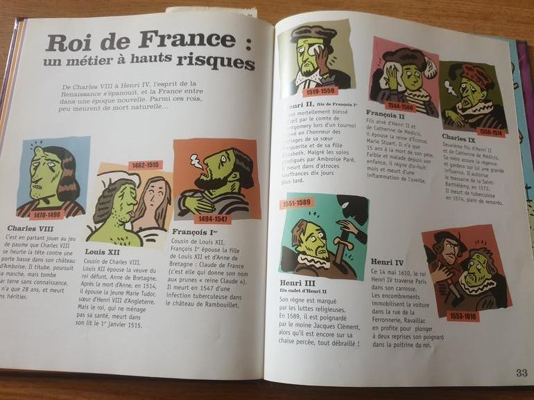 Французский юмор... эти "зелёные человечки" - французские монархи. Ну, жизнь их по разным причинам обрывалась достаточно рано. Тут рассказывается, как именно. И вот такие иллюстрации.