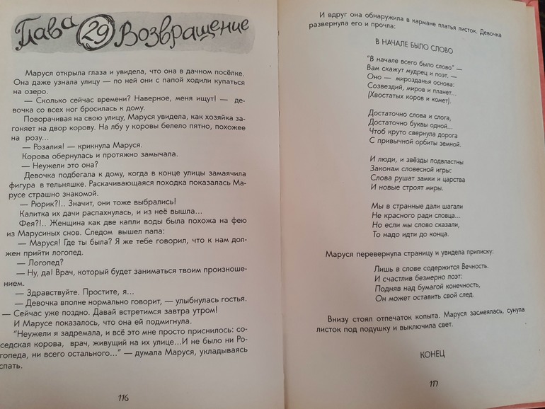 "Малуся и Рогопед" Усачев. Читали-читали с Ильдаром, еле дочитали))). Эта книга была тоже у меня в "хотелка", но после прочтения вопрос отпал). Хорошо что не купила её, всё таки разочаровываться в библиотечных книгах не так обидно как в купленных на свои кровные). Я заметила что с книгами Усачева у нас пока не складывается, юмор автора кажется натужным, не смешным. Но я пока сужу всего по нескольким книгам. Собачка Соня тоже не впечатлила. Не теряю надежды с Дедморозовкой, столько хороших отзывов, надеюсь нам понравится, куплена давно, стоит не читанная).