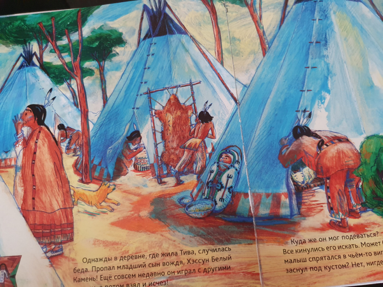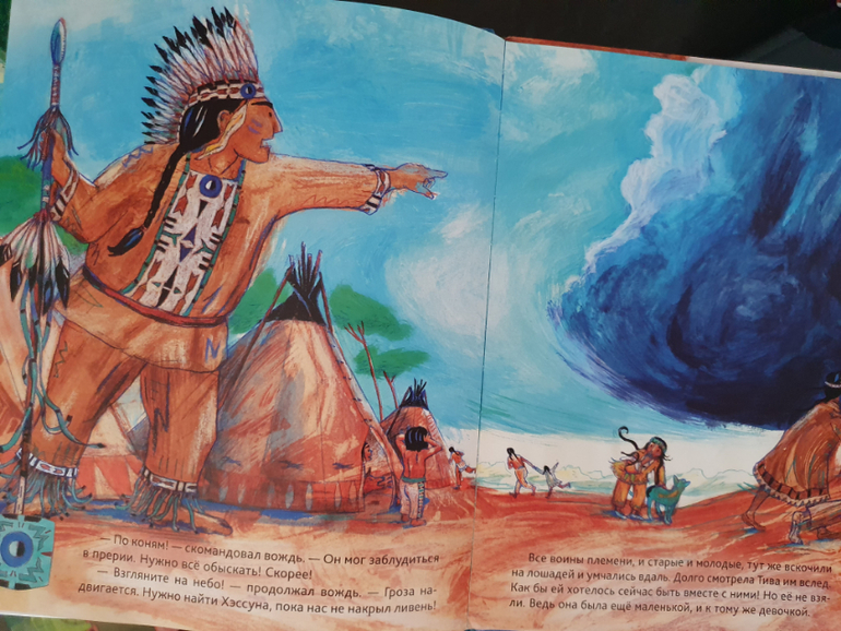 "Тива Танцующий Листик". Наверное мы уже сильно переросли книгу. Рисунки хороши, сюжет совсем не впечатлил. Книга скорее для совсем малышей, для первого знакомства с темой индейцев.