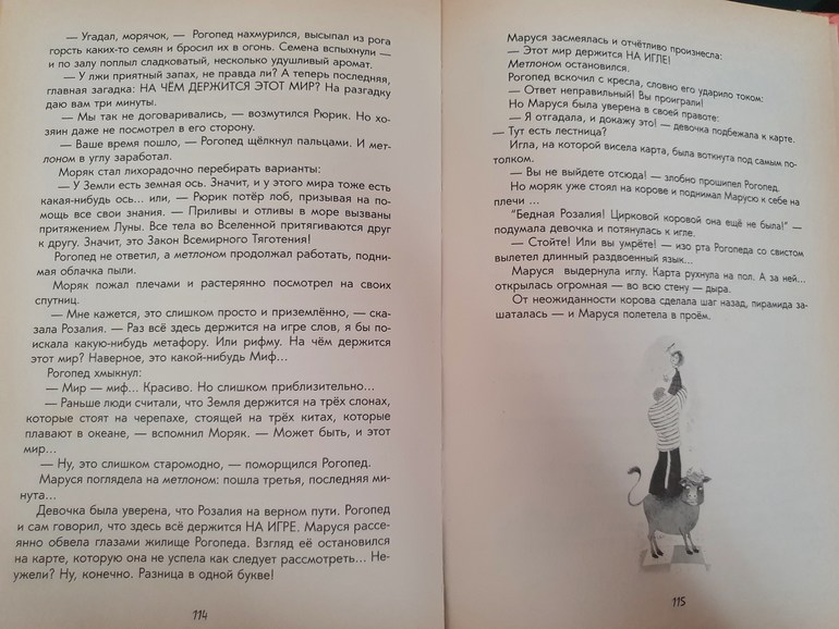 Также в книге меня смутило, что подряд по тесту меняется правильное-неправильное обозначение героев. Например ситуация с моряком, который по логопедическому обыгрыванию является моЛяком. В одной строчке он моЛяк, через несколько предложений моРяк и рядом опять же моЛяк. Может я что-то не поняла, что это за приём? В книге и без этого продраться бы сквозь все каламбуры.