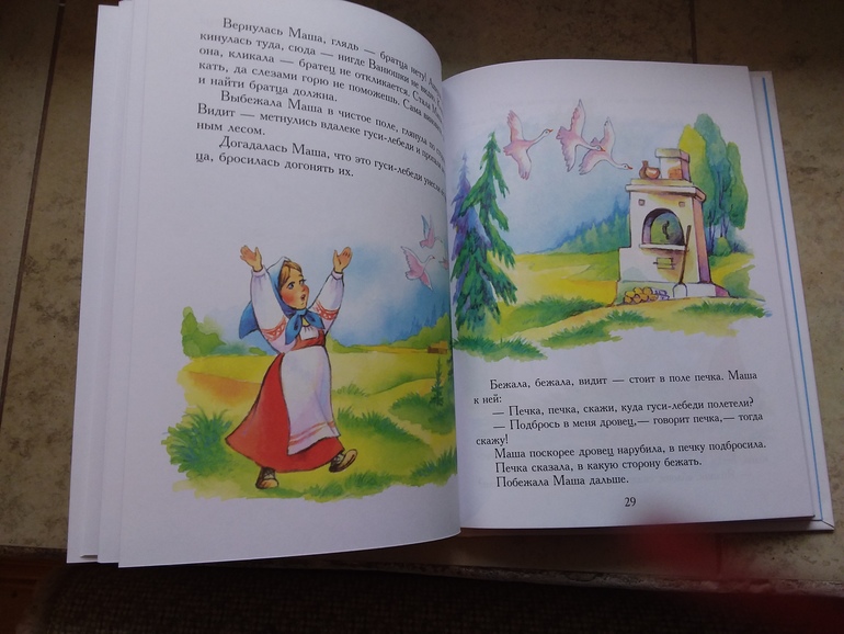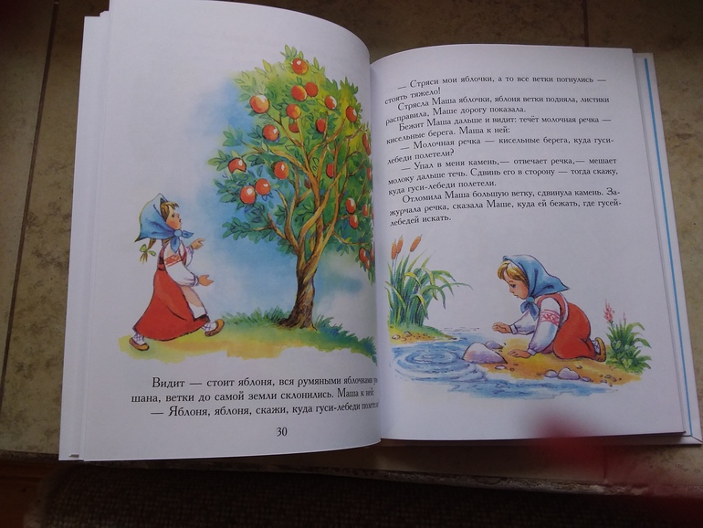 В прошлом году у дочки было задана сказка "Гуси-лебеди". Скажете - Удивила! Да в любом сборнике, да в любом магазине... Я тоже так подумала и достала книжек пять из своего шкафа. И тут засада! Нужен был пересказ Булатова! А в современных изданиях его практически нет. Читали к уроку мы в итоге книгу из школьной библиотеки. Но а мама потом перерыла все магазины и нашла на тот момент только в книге от "Самовара", у меня же ещё младший в школу не пошёл, значит мне надо ). Если вы знаете современное издание с хорошими иллюстрациями в переводе Булатова, ткните меня носом, пожалуйста. Я бы не сказала, что здесь ужасные иллюстрации, НЕТ!, но мне чего-то не хватает.