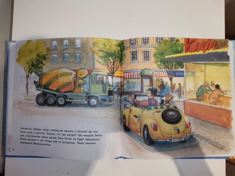 Удобный формат и текст, понятный для 2-х летнего ребенка, учитывая, что мы живем в городе и машины видим регулярно.