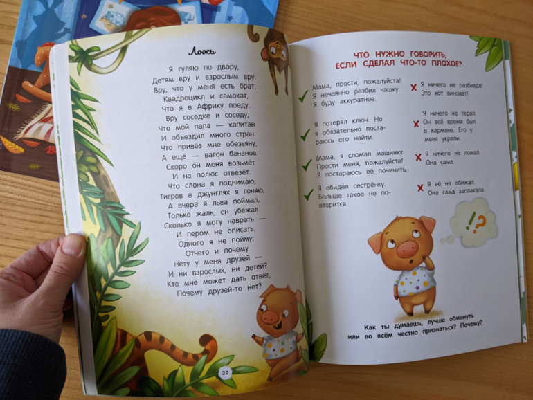 Начали читать две книги про хорошее поведение, обе мне нравятся, но их надо читать очень дозированно, по ситуациям, которые актуальны. По крайней мере, сын гораздо эмоциональней и заинтересованней реагировал на рассказ про бабушку, по сравнению с тем, который о братьях-сестрах (которых у Тима еще нет). Думаю, перечитаю сама на досуге, чтоб знать, когда предлагать.