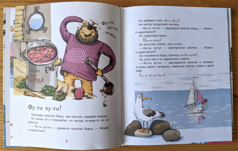 Вместе с книгами про Сири начали читать Собачку Соню, хорошая подготовка к книжкам без картинок. Еще нам очень понравились истории про Капитана Борща. Меня покорили иллюстрации и морская тема, сын ржал над фу-ты-ну-ты😁 а так, мысли там довольно глубокие и философские.