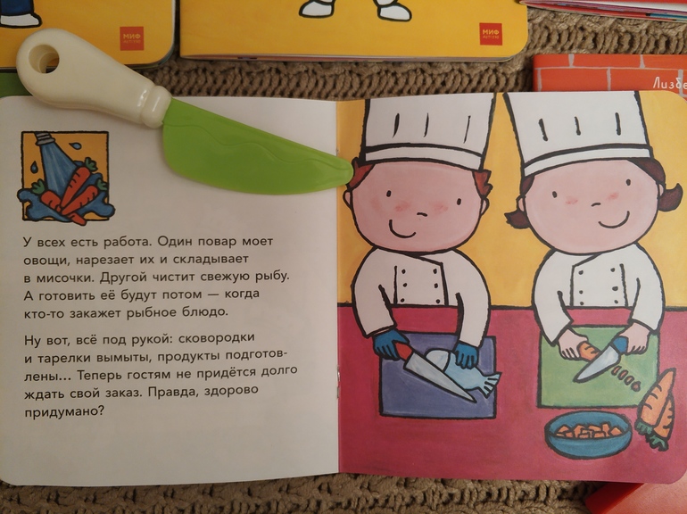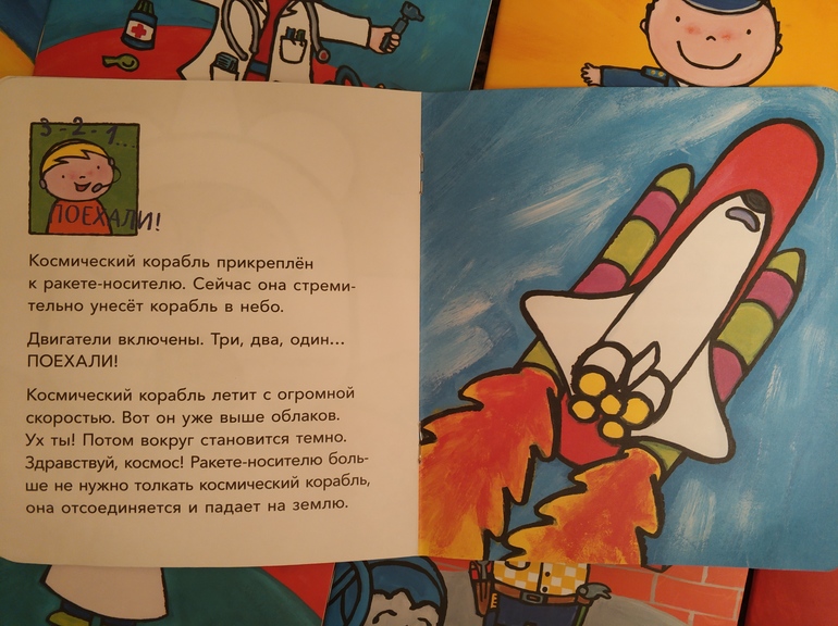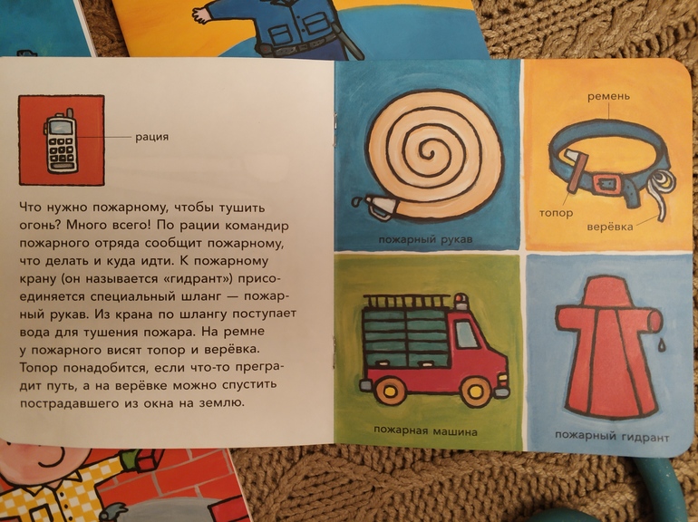 В книгах много подробностей, которые подойдут и на более старший возраст, но, как оказалось, и в ровно 3 все они очень интересны. Я, например, не смогла бы так подробно, интересно и понятно рассказать про полицейского и пожарного.
