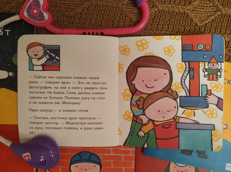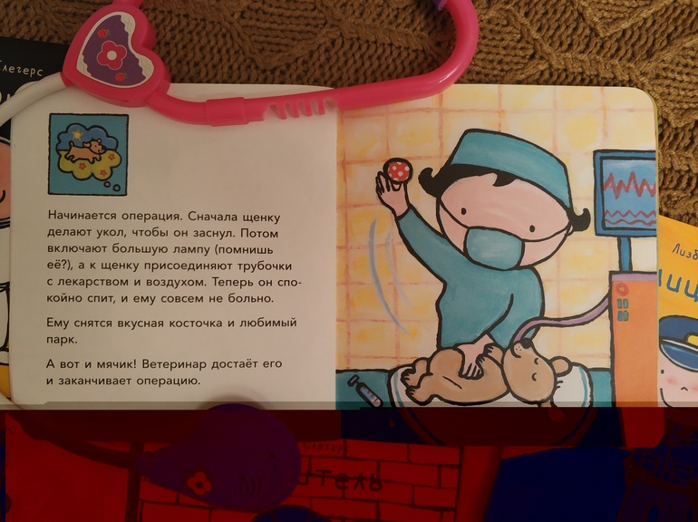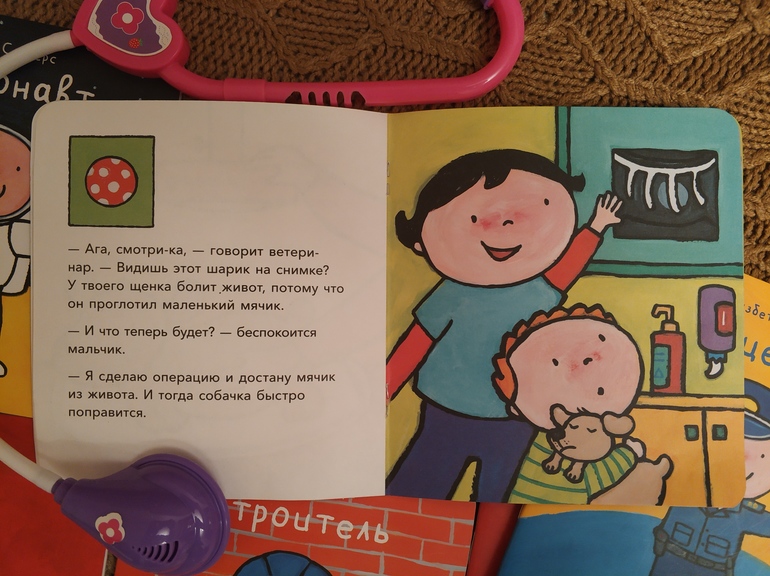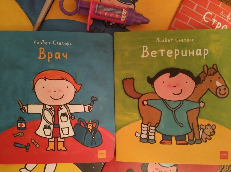 Дочке 3, и нам как раз не хватало информации для развития сюжетов ролевых игр. Сразу скажу, что после прочтения игры в доктора и ветеринара существенно обогатились и стали ежедневной традицией. Эти профессии пока наиболее близки, хотя читали по 100500 раз обо всех профессиях, кроме строителя и пожарного ("девочка-девочка" 😏).