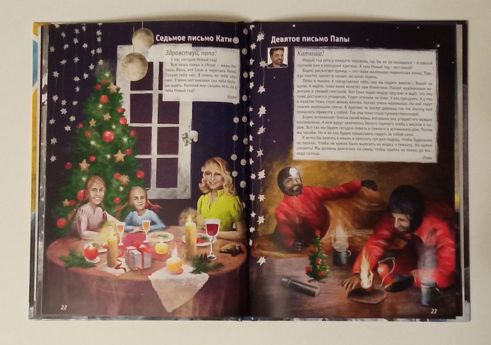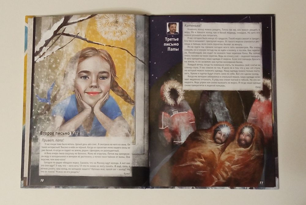 Читали книги про пап. Аню впечатлила "Катя, папа и Северный полюс". В ней необычная подача текста - в виде писем девочки Кати и её папы полярника. Книга Ане настолько понравилась, что она собирается, когда вырастет, отпроситься в экспедицию на Северный полюс пугать французскими духами белых медведей)