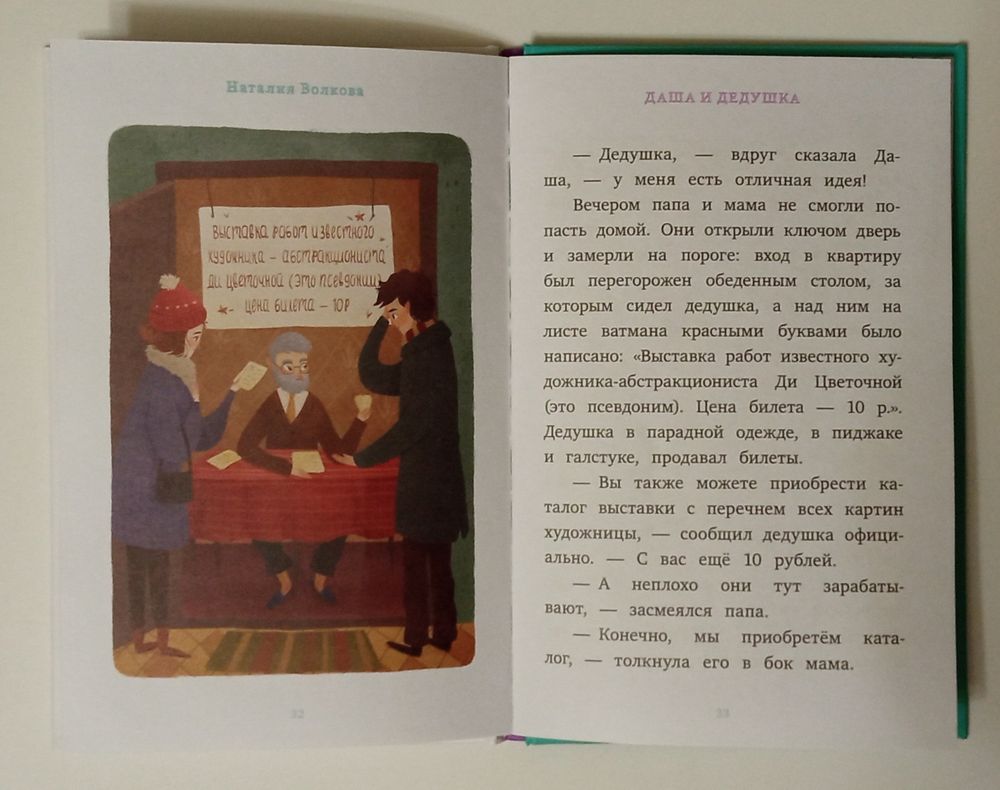 Нам с Аней очень нравится книга Н. Волковой "Даша и дедушка". В книге два рассказа. Первый - " Валенки" про то как Даша своим капризным поведением обидела дедушку. А второй - "Художник". В нём Даша и дедушка придумали устроить дома выставку картин.