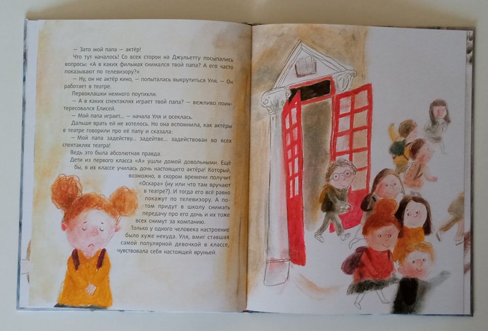 А вот история про Джульетту Ане запомнилась. В книге ей понравился папа, который пришёл девочке на помощь, не побоявшись выступить на сцене в театре. А вот поведение Джульетты Аня не поняла. Сказала, что она саму себя наказала. Не нужно было обманывать.