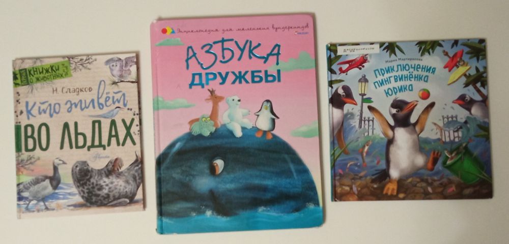 Аня с удовольствием прослушала книгу "Приключения пингвиненка Юрика". Про "Азбуку дружбы" сказала, что книга долгая. И была рада, когда мы её дочитали. В книге Сладкова ей понравились иллюстрации.