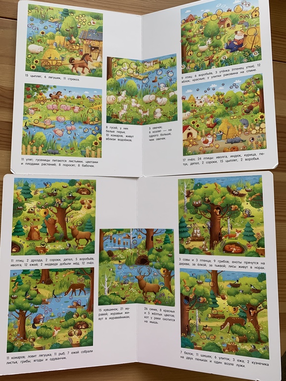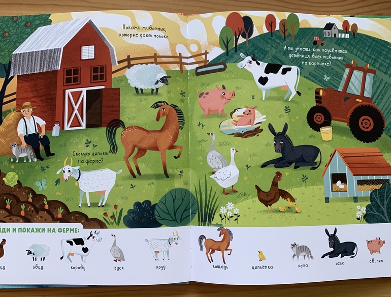 Эти книги по идее должны прослужить достаточно долго - до момента изучения счета. На каждой странице есть задания посчитать животных.