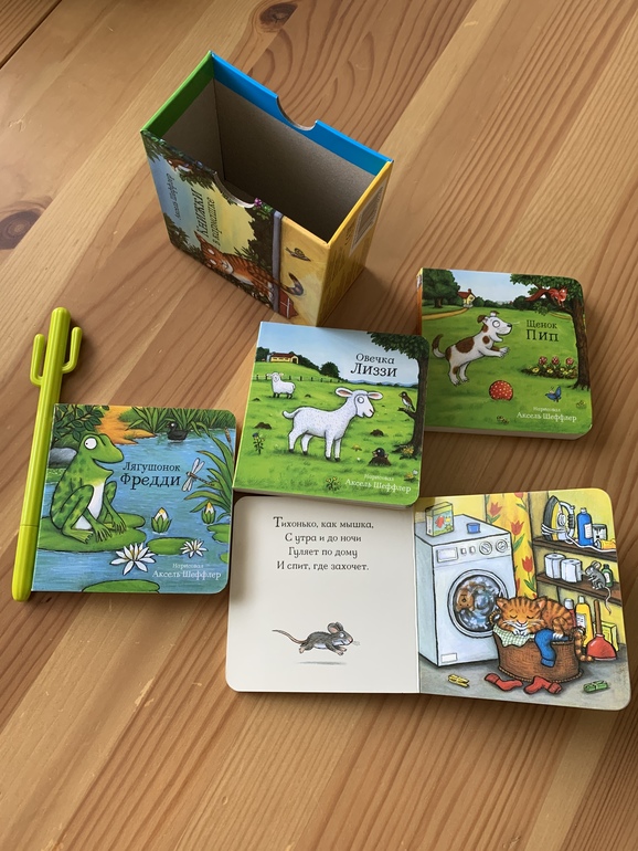 Жалко что Дональдон у вас не издают уже. Это так странно, ведь у нас в России она безусловный мастхэв для тоддлеров, а на родине уже не печатают тиражи 😳 оч оч странно. Хороший же автор.