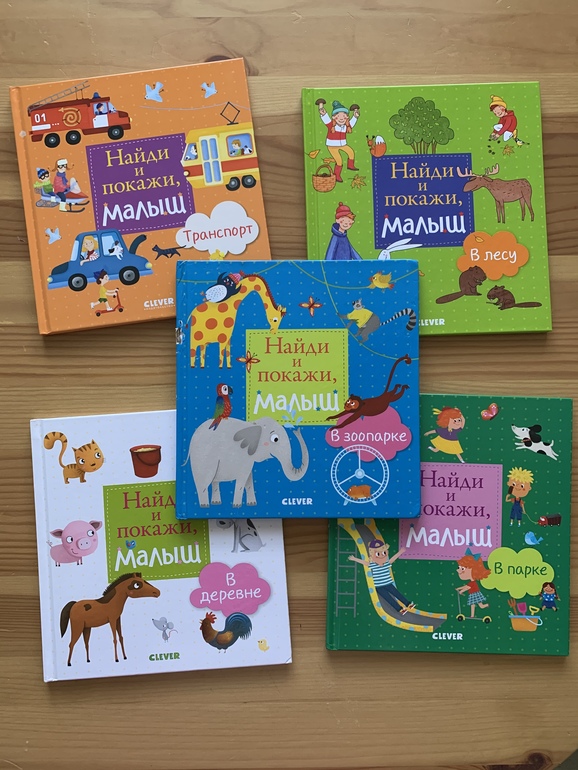 Вообще у нас небольшая коллекция из серии "Найди и покажи, малыш» издательства Clever. Картинки там простые, компьютерные, но малышу нравятся. Любимые на данный момент - про зоопарк (эта вообще уже на протяжении полугода в фаворитах) и деревню, их чаще всего листает. Остальные по настроению: