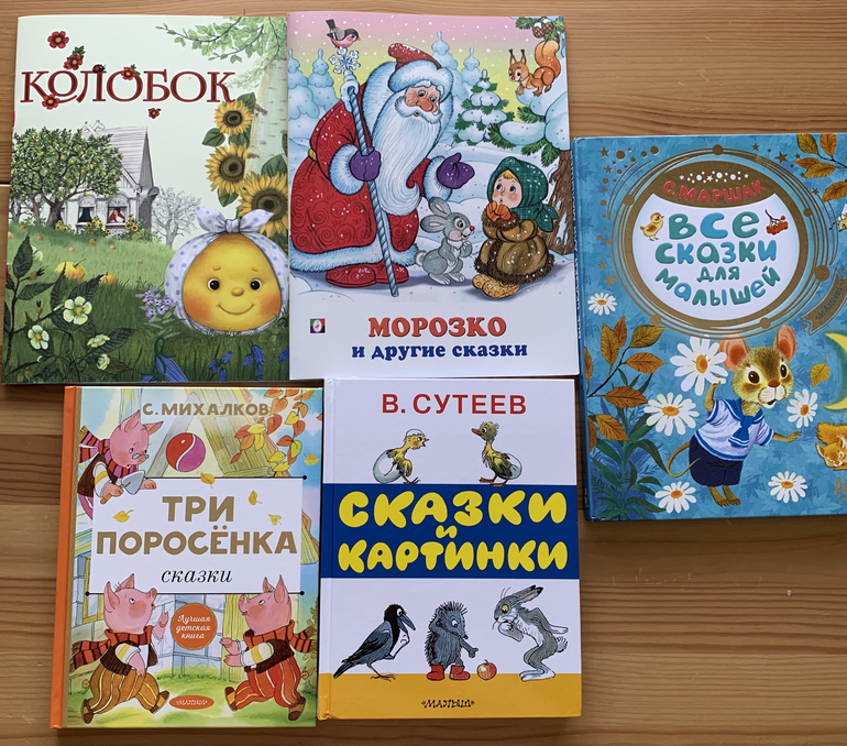 Плюс сборник стихов Агнии Барто. Из этой коллекции сыну больше всего нравится «Колобок» (книга от издательства «Проспект», рисунки по мультфильму студии «Полёт»).