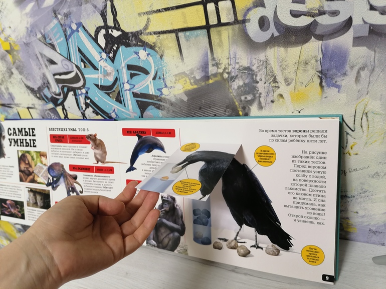 7." Чудо-животные"- необычно оформленная энциклопедия о животных, здесь собраны факты о самых больших, самые быстрых, самых опасных животных нашей планеты. Нравится, нестандартная классификация животных, наличие окошек, подвижных элементов. Также можно узнать, что внутри животного или, например, заглянуть в пасть гиппопотаму.