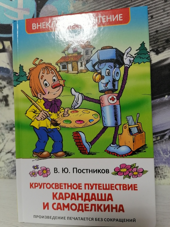 5. В.Ю. Постников "Кругосветное путешествие Карандаша и Самоделкина". Здесь я ошиблась и купила не очень удачное издание, маловато иллюстраций, но книга компактная, удобно брать с собой в дорогу. Пока сын не очень проникся, но мы её только начали читать.