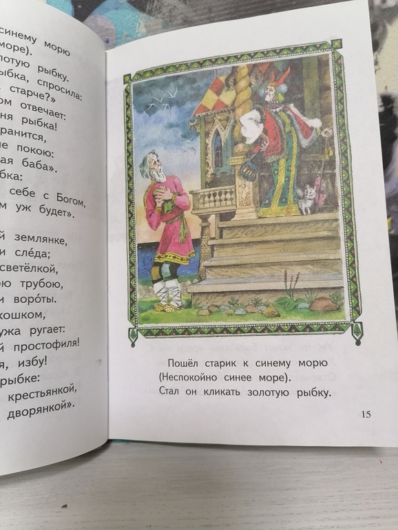 6. А. С. Пушкин "Сказка о рыбаке и рыбке" и другие сказки. Это сборник сказок, в котором помимо вышеуказанной есть отрывок из поэмы "Руслан и Людмила" и "Сказка о царе Салтане....". С этой книгой сын знаком с младенчества, практически единственное, что "вырубало" ребенка, когда не помогали колыбельные и уже не знали, что делать. С тех пор периодически возвращаемся к ней, любим перечитывать.