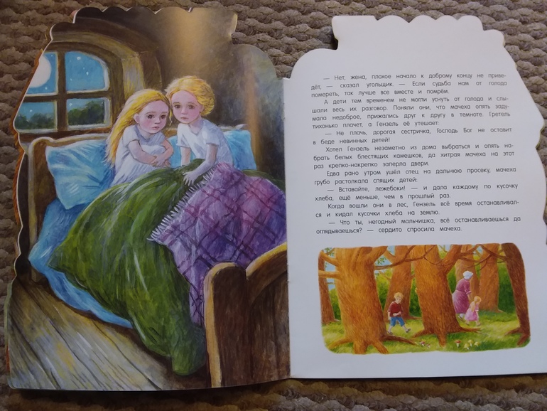 Пряничный домик и Мальчик-с-пальчик читали в первый раз, слушал аж затаив дыхание. Конечно, больше вопросов, как родители могли так поступить.