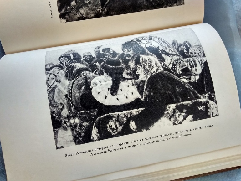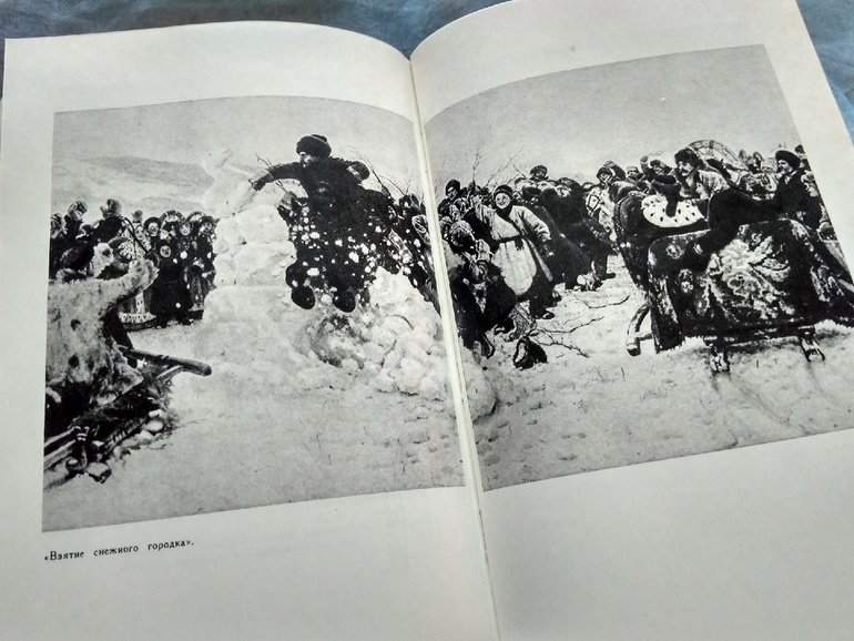 Картину Сурикова все знают. Не стала копировать ее в цвете. Это разворот из моей старой книги, с которой в детстве началось мое знакомство с живописью.