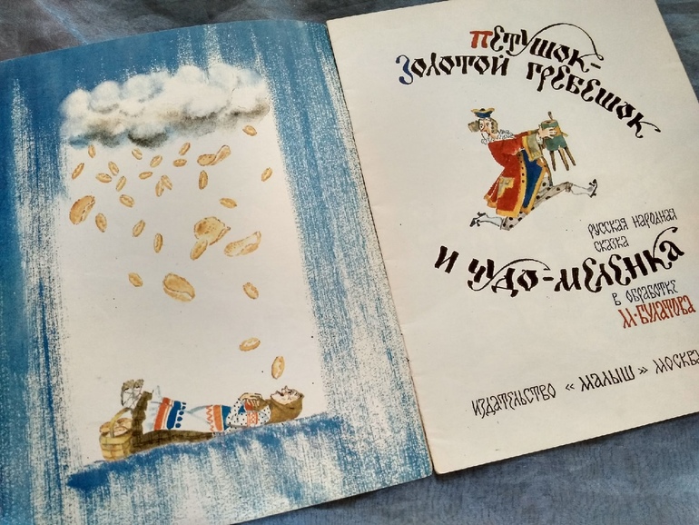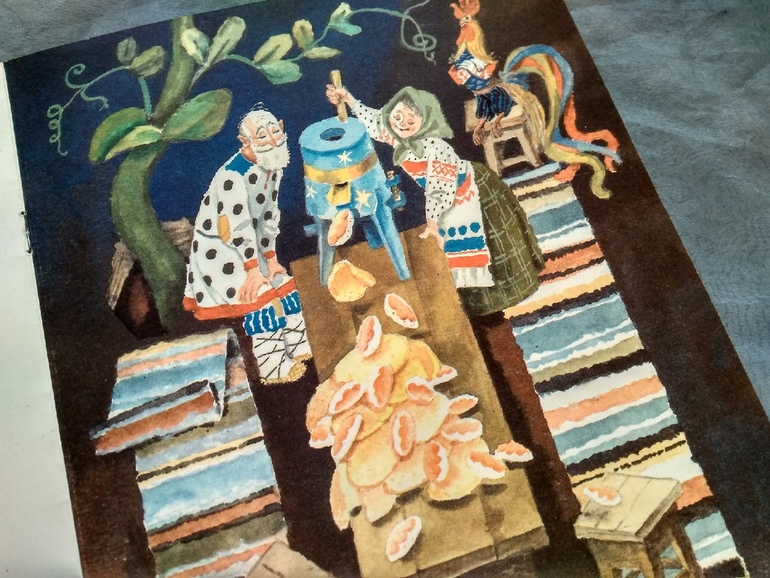 Но нашлась зато в сборниках другая сказка, которую мы читаем в тонкой книжке "Петушок-золотой гребешок и чудо-меленка", и которая является воплощением моей мечты о коммунизме беспечальной жизни )