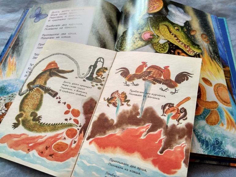 А у Чуковского в Путанице, как вы помните, Крокодил пирогами и блинами море синее тушил... Как же я люблю "Путаницу"! Именно с нее мы начинали с самыми маленькими детьми знакомство с Чуковским. Потом уже шли Телефон и Мойдодыр.