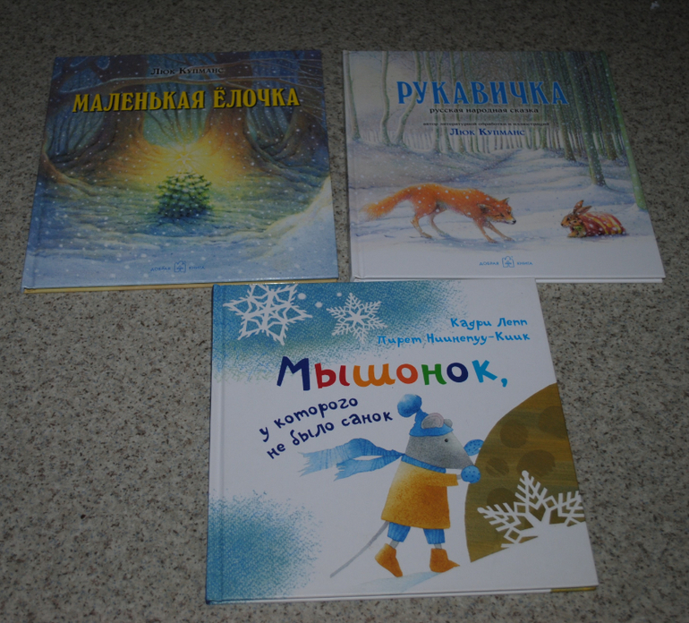"Рукавичку" эту я решила все же убрать, не интересна уже сказка, больше возмущались дети, что рукавичка давно порваться должна была. Ёлочка с мышонком - просто милые истории. Новые такие уже не беру, но старые порой перечитываются.