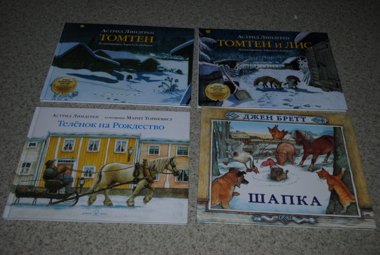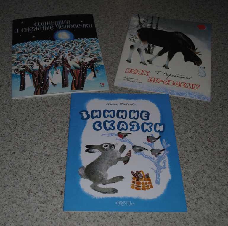 Нигмовские картинки. Милые, славные. Все, кроме "Лисички", зимние. Очень приятные сказки, детям нравятся, хоть и на один зубок уже.