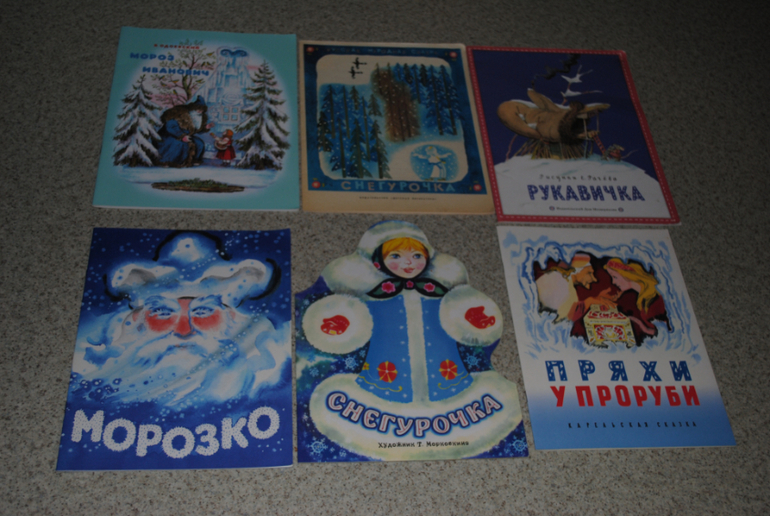 Скрепки зимние дочитывали. Рукавичку с Рачевым пока оставила, здесь иллюстрации нравятся, любят пристройки к рукавице разглядывать. В снегурочках разный пересказ, его тоже сравнивали. у остальных трех сюжет похож.