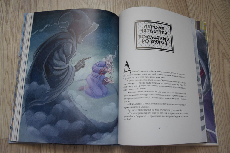 Книга, полная чудес, рождественского чуда. Чёрствый, меркантильный и до ужаса одинокий Эбинизер Скрудж, всю жизнь свою положивший на зарабатывание денег, лишившийся простых, человеческих радостей. В Сочельник к нему является призрак его друга, компаньона Марли. И Скруджу дается ещё один шанс , последний шанс взглянуть на свою жизнь с другой стороны. Красивая книга, иллюстрации чудесные!