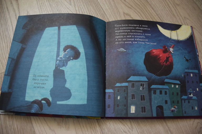 Гном спускается по верёвке с Луны с большим мешком и забирает игрушки у деток, которые их разбрасывают по всему дому!